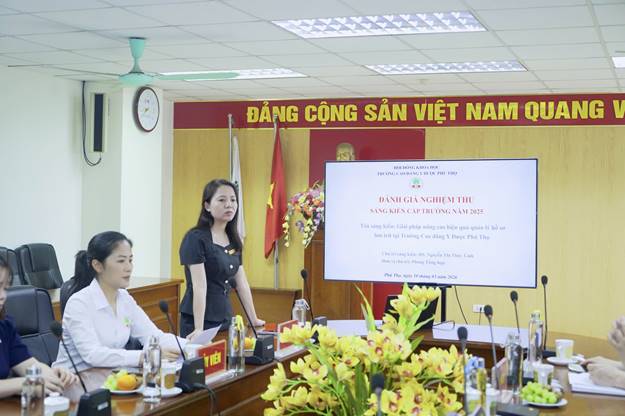 Thực hiện kế hoạch hoạt động khoa học và công nghệ năm 2026, Trường Cao đẳng Y Dược Phú Thọ đã tổ chức Hội đồng nghiệm thu, thẩm định sáng kiến: “Giải pháp nâng cao hiệu quả quản lý hồ sơ lưu trữ tại Trường Cao đẳng Y Dược Phú Thọ”, tác giả là bà Nguyễn Thị Thùy Linh – cán bộ Phòng Tổng hợp.