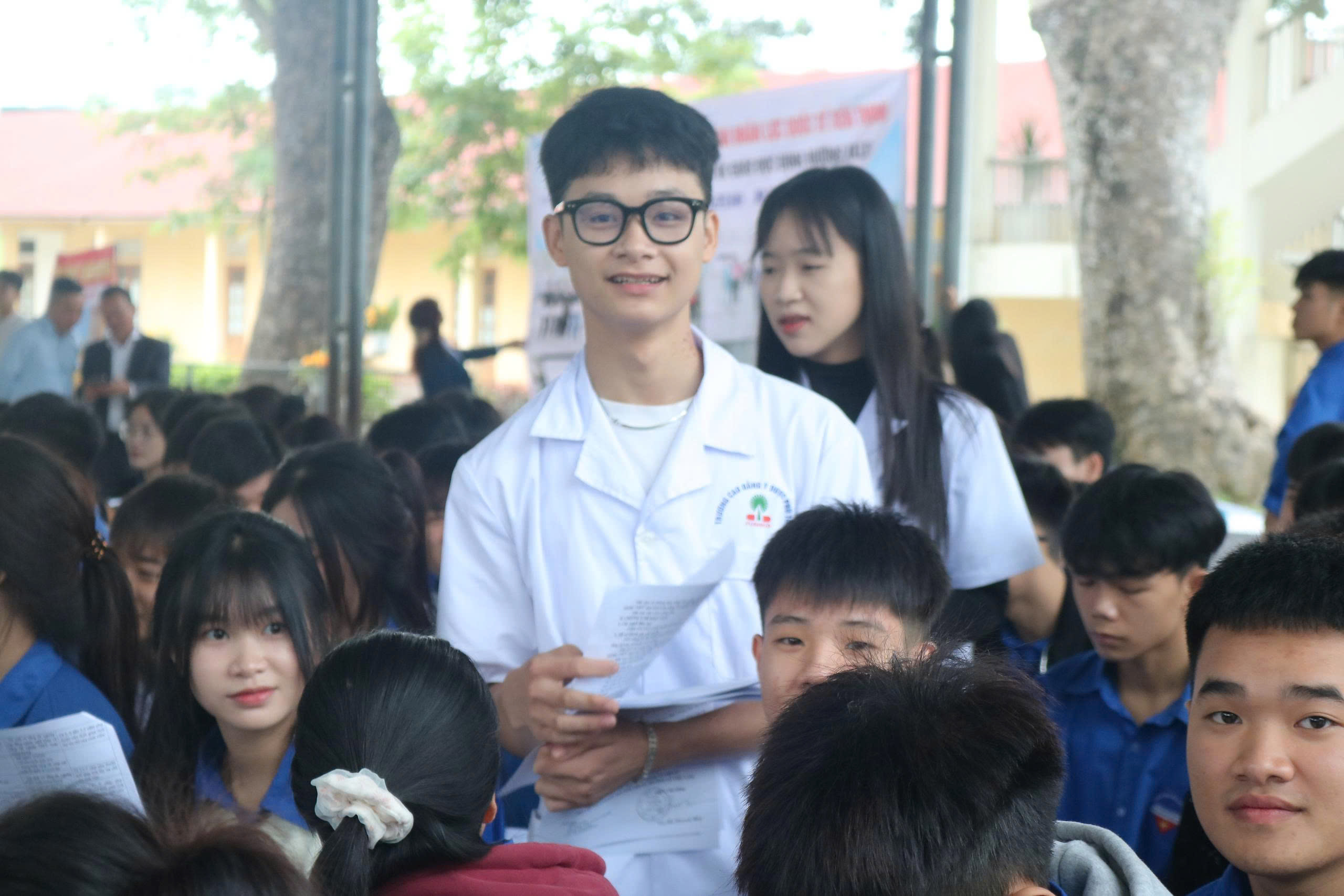 Tại gian tư vấn của Nhà trường, đông đảo học sinh lớp 12 hào hứng tìm hiểu thông tin về 7 ngành đào tạo trình độ Cao đẳng: Dược, Điều dưỡng, Y sĩ đa khoa, Y học cổ truyền, Kỹ thuật xét nghiệm Y học, Kỹ thuật hình ảnh Y học, Hộ sinh. Các em được tư vấn cụ thể về chương trình đào tạo, cơ hội thực tập tại bệnh viện – doanh nghiệp, và lộ trình việc làm trong và ngoài nước. Gian hàng của Nhà trường trở thành điểm nhấn nổi bật của phiên giao dịch, thu hút nhiều lượt học sinh, giáo viên và phụ huynh đến trao đổi, chụp ảnh, và nhận tài liệu tuyển sinh.