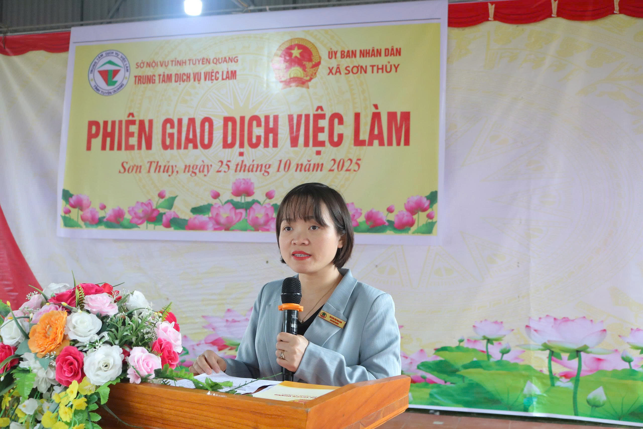 Tham dự Phiên giao dịch việc làm có sự hiện diện của đồng chí Nguyễn Đức Chính – Giám đốc Trung tâm Dịch vụ việc làm, Sở Nội vụ tỉnh Tuyên Quang; đồng chí Trần Văn Bút – Chủ tịch UBND xã Sơn Thuỷ cùng các đồng chí lãnh đạo UBND xã Sơn Thủy, đại diện Ban Giám hiệu các trường THPT, cán bộ nhân viên Trung tâm Dịch vụ Việc làm thuộc Sở Nội vụ tỉnh Tuyên Quang và các đơn vị tuyển dụng, cơ sở đào tạo trên địa bàn.