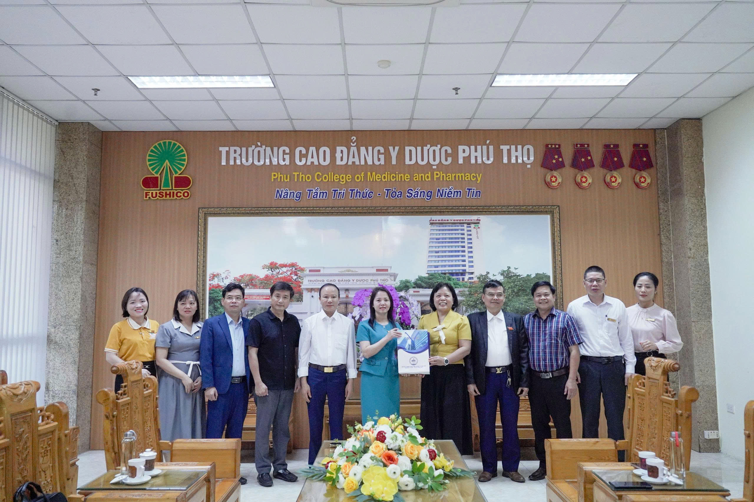 Tại buổi làm việc, TTUT.TS. Hà Quang Lợi đã báo cáo về quá trình hình thành và phát triển của Nhà trường. Xuất phát từ một doanh nghiệp với nhiều khó khăn, trải qua 6 giai đoạn phát triển với nỗ lực không ngừng, Nhà trường đã từng bước khẳng định vị thế và trở thành Trường Cao đẳng Y Dược Phú Thọ như hiện nay. Đặc biệt, Nhà trường là một trong những cơ sở giáo dục nghề nghiệp tự chủ sớm trên cả nước, hoạt động theo mô hình doanh nghiệp trong trường học. Với quy mô khoảng 6.000 sinh viên, tỷ lệ sinh viên tốt nghiệp có việc làm cao. Sinh viên thường xuyên được các doanh nghiệp tuyển dụng với nhiều chế độ đãi ngộ hấp dẫn, đồng thời mở ra cơ hội làm việc tại các thị trường quốc tế như Nhật Bản, Đức, Úc… Bên cạnh đó, chất lượng đào tạo luôn được chú trọng từ đó tạo dựng niềm tin với người học, trong đó có những gia đình có nhiều thế hệ theo học tại Trường.