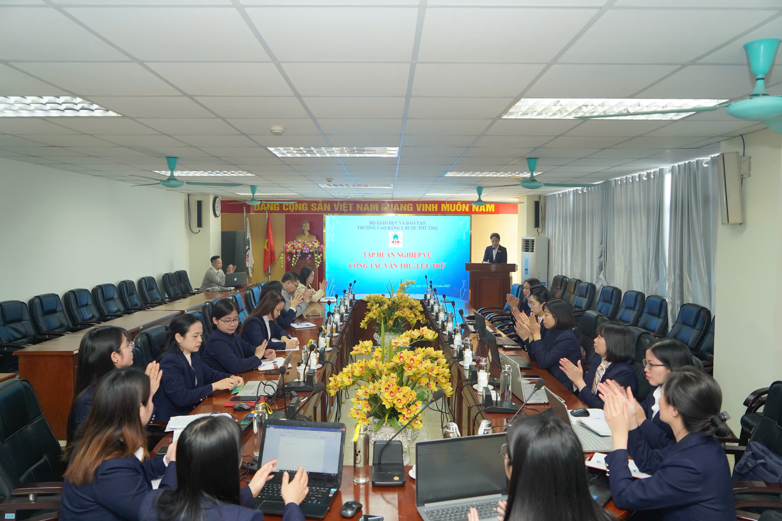 Buổi tập huấn là hoạt động thiết thực, góp phần nâng cao chất lượng công tác hành chính – quản trị, hướng tới xây dựng Trường Cao đẳng Y Dược Phú Thọ ngày càng chuyên nghiệp, hiện đại và năng động, đáp ứng yêu cầu đổi mới, phát triển, hội nhập và chuyển đổi số trong giai đoạn hiện nay.